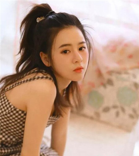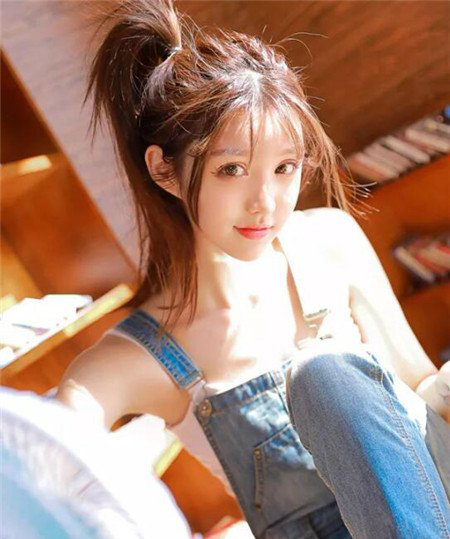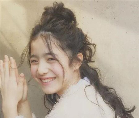 刘海上梳绑扎的苹果头,耷拉在一侧,说不出有多可爱。