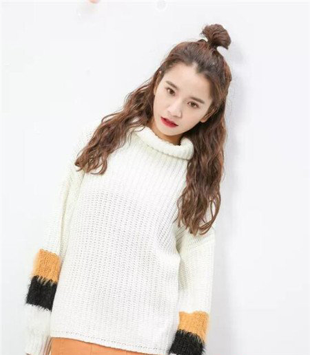 长发半扎发,不仅限于所谓的苹果头或者是丸子头,也可以是这款式的小型双马尾。