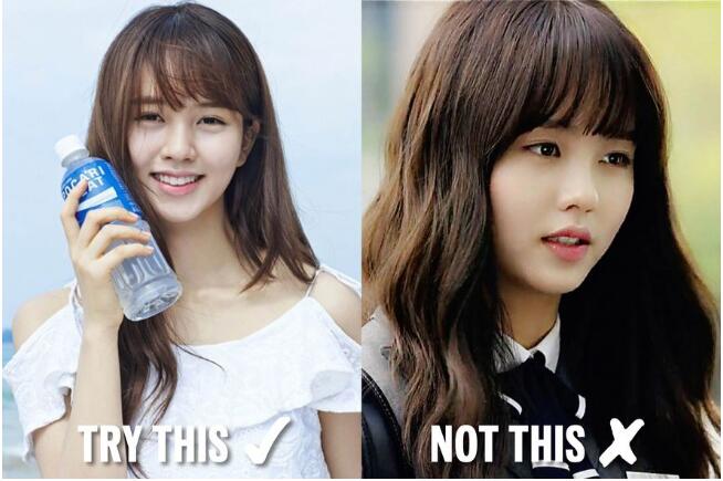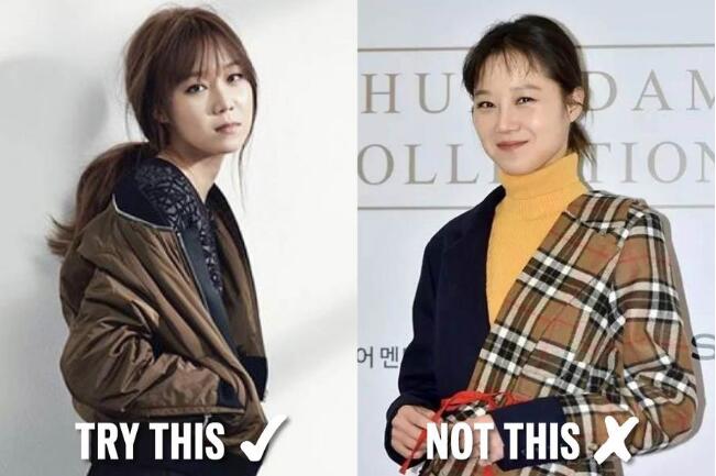 如何修饰:虽然有刘海的包包脸发型具减龄效果,但不是所有包包脸都适合有刘海,其实孔孝真最适合她的包包脸发型是偏深褐色,刘海不要太薄,要保持一点厚重感,而且记得要剪至齐眉甚至盖过眉!