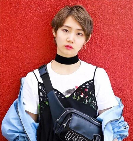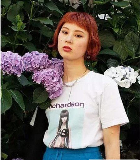 碎碎修剪在眉毛之上的齐刘海,凸显五官,又显得非常精神,浅灰黄色的染发,搭配个性棒球帽,很有原宿风的感觉。