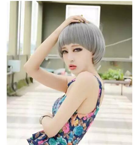 超帅气的一款波波头短发发型,银灰色的染发,配上魅惑的日系妆容,原宿风十足,时尚又显得十分个性。
