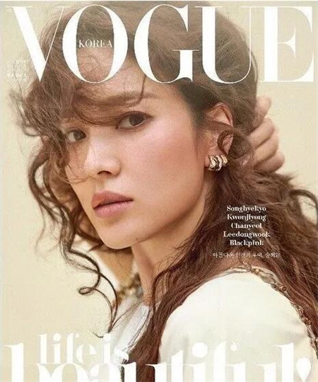 宋慧乔之前拍摄的封面造型,一款复古的嬉皮士卷,柔美浪漫,使得她化作摇滚朋克风女神。