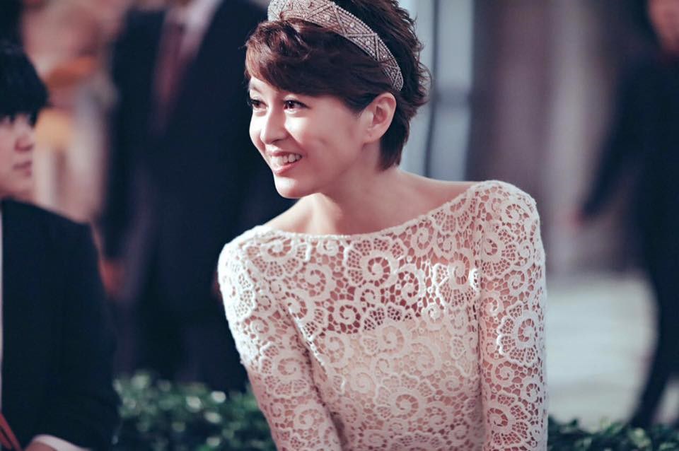 而嫌头上有点单调,梁咏琪箍了个发箍,而发箍像一顶皇冠,配上蕾丝洋装,公主风浓厚,甜美又清新,谁说公主一定都要长发呢?
