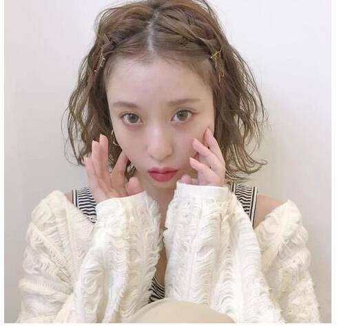 这是一款萌萌哒的短,齐脖短发和波浪卷真的很搭呢,像小姐姐这样弄成中分刘海编发之后再戴上金色的发卡,甜到爆炸呢。