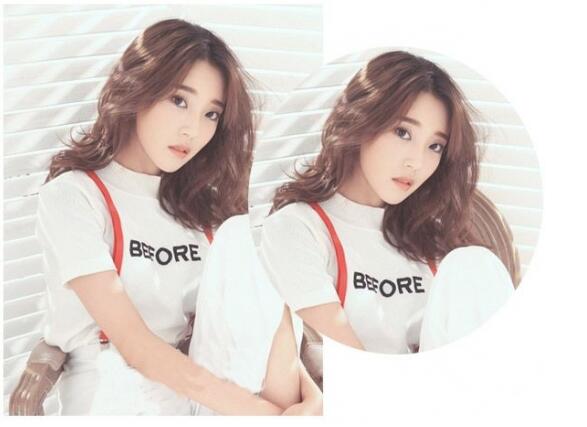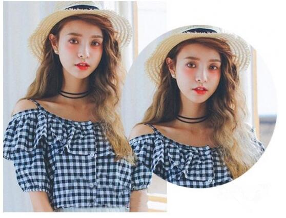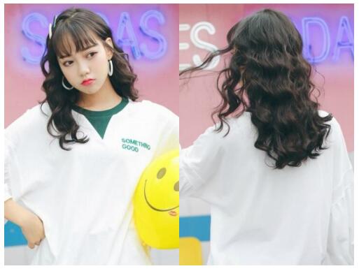 无刘海的设计使妹子的一张脸蛋清晰呈现,虽然有点圆润,却让人觉得憨态可爱,很有日系少女的甜美感,蛋卷状的中长发披在肩膀两侧,加上乌黑的发色就更显自然大方了。
