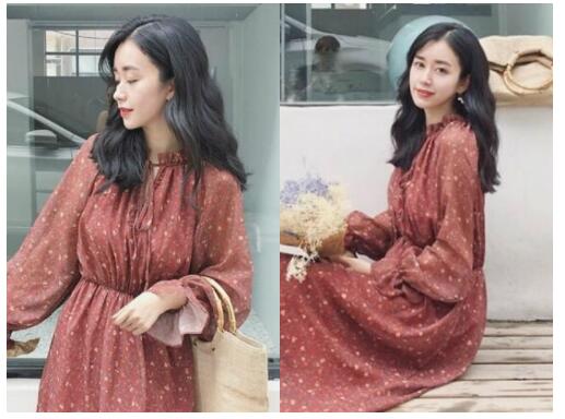 比较简约的一款日式中长蛋卷头发型,经典的黑发干净得体,经过卷烫的发丝充满线条感,侧面展现出女生柔美的一面,中分的刘海设计修颜显瘦,使女生本就漂亮的鹅蛋脸显得愈发精致了,搭配一条红色碎花连衣裙,与纯黑的发色相互衬托,让人油然而生一种岁月静好的感觉。