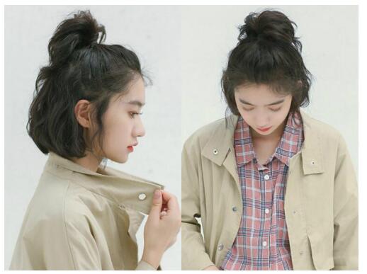 美少女们最喜欢的丸子头,在浪漫的秋天当然也少不了。头发随意地梳理好绑成一个丸子立在头顶就可以了,发丝间尽量整理出蓬松感,这样看起来会自然很多,扎不起来的碎发就随它随风飞扬吧,因为可以展现出女生不拘小节、自由随性的一面。