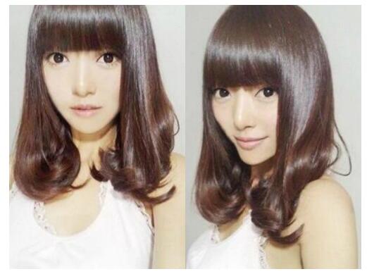 如果你希望显得成熟一些,不妨试试只把发尾烫卷的梨花头发型,从头顶垂下来的头发顺直有光泽,在接近发尾时突然来个卷度,给人一种特别的视觉效果,刘海修剪异常整齐,完全遮住额头更突出女生精致的五官,两侧稍显轻盈的发色挡住两腮更突出女生尖细的下巴,性感的气息不经意就散发出来。