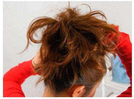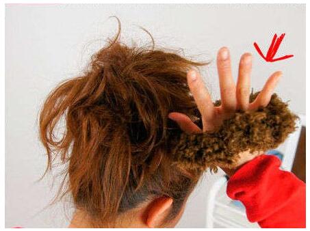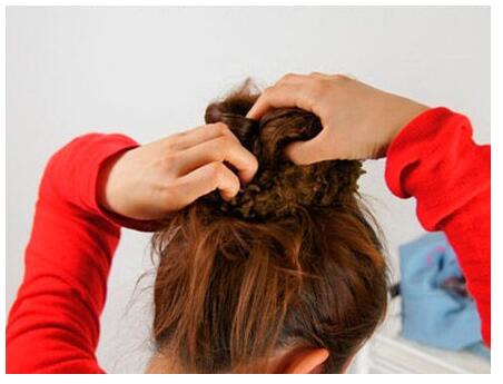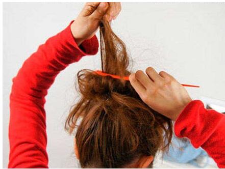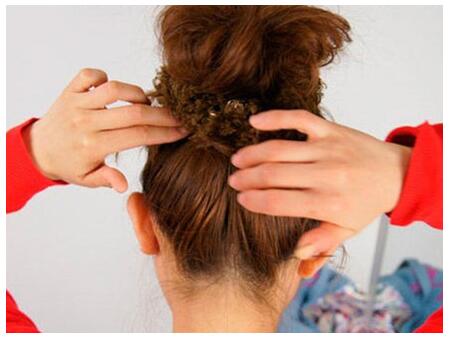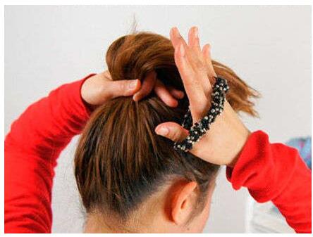 第八步:接着用大发圈将马尾缠绕成花苞头。