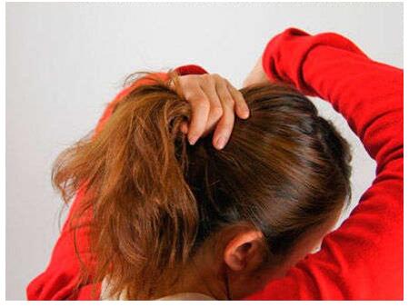 第三步:接着用手将剩下所有头发合拢成高马尾。