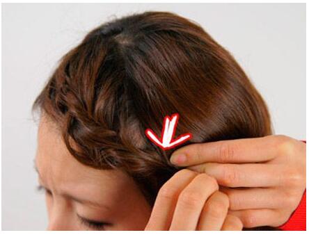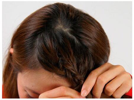 第二步:将辫子的发尾用黑色小发夹别进头发的内侧。