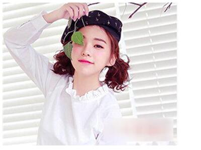 短发 双马尾绝对是一款非常减龄的发型,扎起来简单而且不失可爱感,加上空气刘海和帽子搭配,修颜之余还不忘时髦一把。