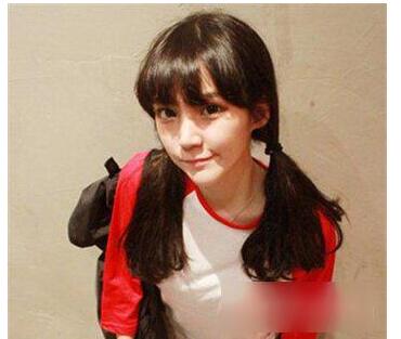 齐刘海双扎马尾发型
