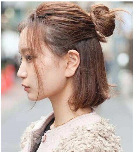 今年超级无敌流行的半丸子头可适合短发扎了,一半扎成饱满丸子头一半披散,看起来既个性又洋气,而且相当减龄显嫩。