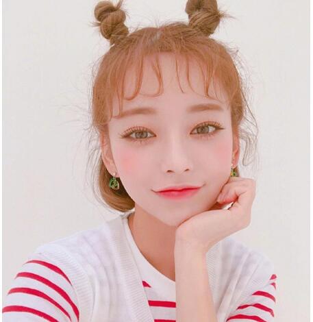 这两年特别流行扎这种可爱到不行的哪吒头,将头顶的头发扎成小啾啾哪吒头,一半是短发 空气刘海搭配,想不招人喜欢都难吧。