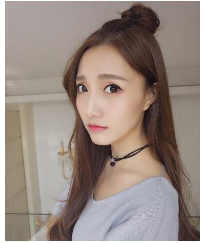 个子比较矮的女孩尽量不要选择太长的发丝,但是很多女孩比较喜欢及腰的长发造型,这款中分造型的超长发丝采用了微卷烫发处理,从发顶位置分离出一束发丝做半丸子头发型,活力四射。