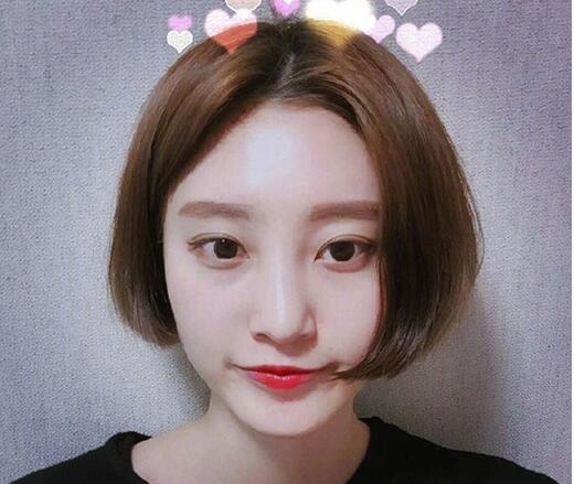 留着刚刚过肩中短直发的倒三角脸型的女生,整齐的发尾在2016年烫成内扣中卷吧,甜美而时尚,轻薄的刘海倾斜的散落在额前,将宽宽的额头自然遮掩,女生的倒三角脸型变成了精致可人的心形脸。