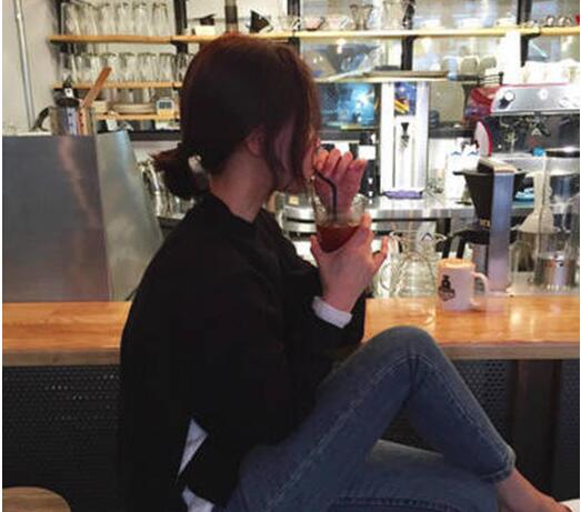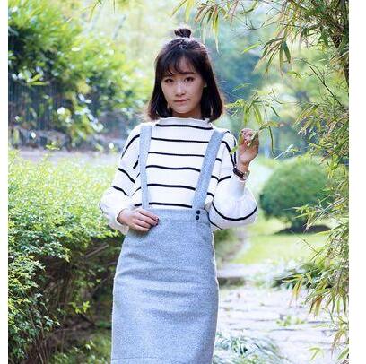 齐眉空气刘海搭配及肩的直发内扣短发,一款2016年流行短发为倒三角脸型女生修颜塑型,在短发基础上将头顶发丝扎成高贵的丸子头,穿上背带裙,倒三角脸型女生是那么的温婉淑女。