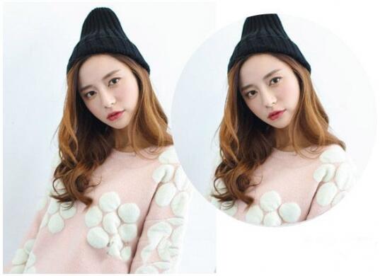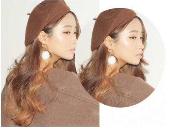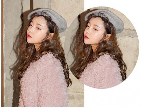 可爱的小圆脸与时尚的韩式长卷发搭配起来,翻转的可爱空气刘海灵动时尚,同样的搭配上帽子十分抢镜哦。