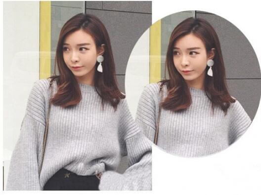 微卷的中长发发型,配合上气质的偏分刘海,修颜显瘦,将一侧的头发别在耳后,也展现出十足的女人味来。