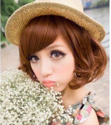 女生短发想要梳甜美?自然是可以的,斜刘海结合内扣的螺旋卷大卷烫发,将鬓角的头发梳整齐之后,发尾横向梳卷发,尾端的头发有些细碎,斜刘海整齐的拢在眼皮的外边。