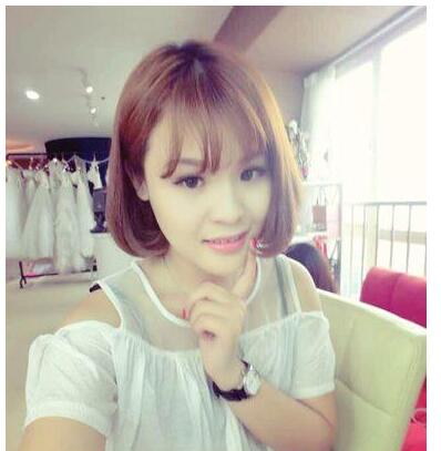 柔顺飘逸的短直发波波头发型非常适合甜美可爱的小女生,酒红色的发丝更添时尚气质感,无刘海的造型设计将精巧的脸型毫无保留的展现了出来,散发出清新脱俗的淑女气质。