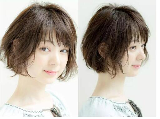 对于喜欢的妹子,就可以试试把头发烫一烫哦,头发经过烫染多少会变得蓬松一些,在脸蛋两边蓬起来的头发就会反衬得脸型小了。再修剪一个稍微细碎的斜刘海遮住额头,就能让别人的视线集中于你的五官上啦,而且发尾长度不超过下巴,使修长的脖子露出来,更显脸蛋小巧哦!