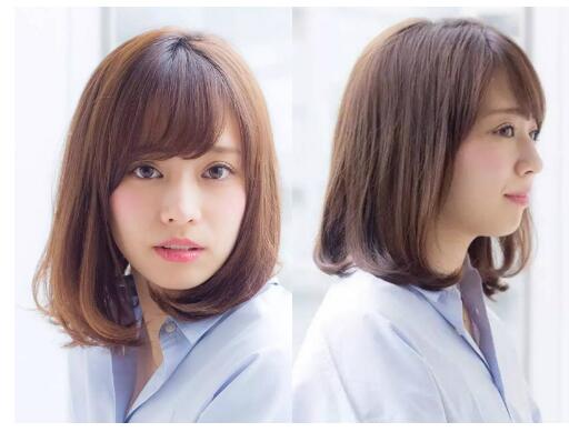 小编真心觉得柔顺的内扣发型具有超强的瘦脸效果!妹子一头顺滑的直发自然下垂,两边的发丝贴着脸颊掩盖原本的脸型,再在及肩的发尾处进行内扣处理,使下巴被收拢包裹,就轻松地修饰出了一个尖细的下巴,轻薄的斜刘海又遮住额头,在发型的作用下脸蛋就是露出的那一部分,想不显瘦都难。