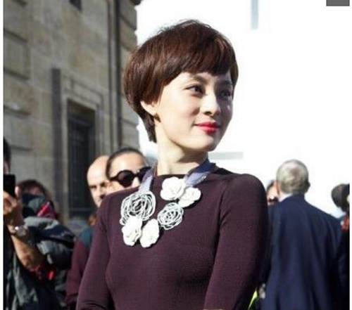 袁泉这短发发型营造出俏皮感。这款整体造型很清爽又不失时尚感。