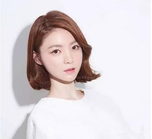 很多电视和电影中明星们的同款短发,大偏分,发尾吹成蓬松内扣,露出五官气质清秀又迷人,圆脸妹子一样也适合,选择的红棕色染发也是2047下半年一大流行之一。