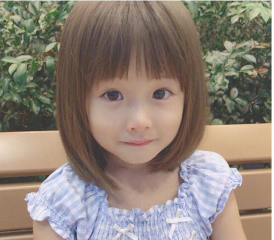 披肩中,这种可爱气质的中长发也超适合女宝宝呢,柔软发质配上整齐修剪的齐刘海,不仅萌呆可爱更是萝莉范儿十足,将头发随意披散还蛮显美~