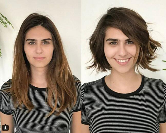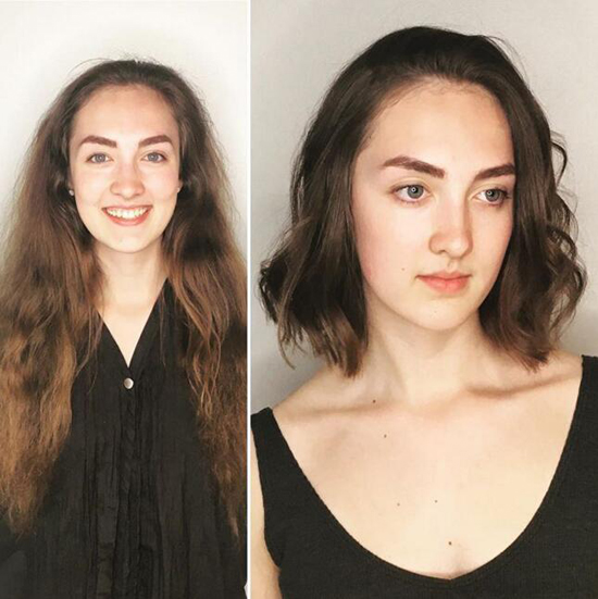 当一头长发又枯又干的时候,即使再不舍,也必须断舍离。这张对比图,就是最好的例证。