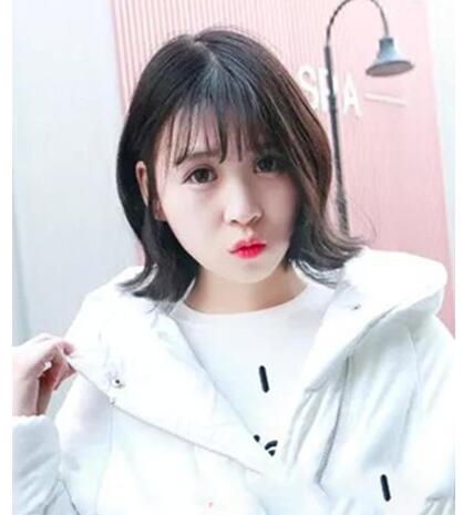 可爱的平刘海搭配上中短发烫发到肩膀的位置显得十分的有气质感,不仅有淑女气质而且还带着小小的俏皮感,对于女生们来说再适合不过了。