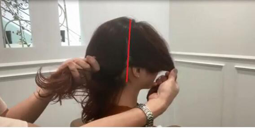 如上图红线右手边,只需要在左侧或右侧,其中一侧预留约1/4的发量就好! 另一边记得留一些发丝,做浏海用喔!