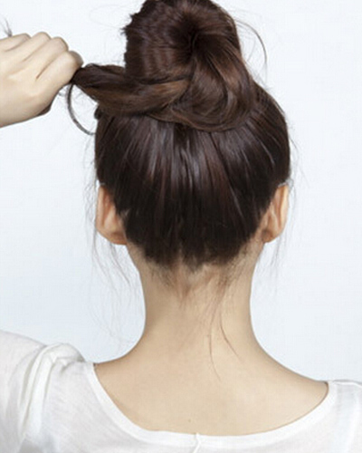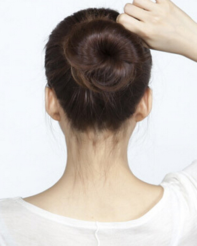 第四步:以扎发发根为中心,开始进行缠绕成丸子头。
