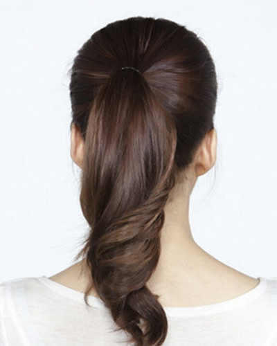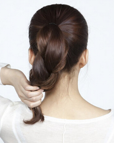 第五步:到发尾的时候在用黑色小发夹固定好,这样就完成这款蓬松丸子头了。