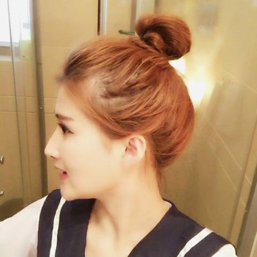 清爽的露额设计的发型最适合夏季了,简单丸子头与时尚染发颜色搭配起来,勾勒出无比的时尚与个性的一面,整个造型清新又养眼。
