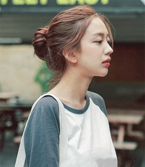 无刘海设计 精致又可爱的小丸子头,不仅时尚而且有气质感,还有给人一种小可爱的感觉,女生夏季这么扎真心减龄。