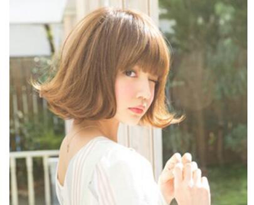 走甜美路线的妹子最适合这一款短发了,空气刘海搭配轻松变身甜美气质girl,而且相当减龄显嫩。