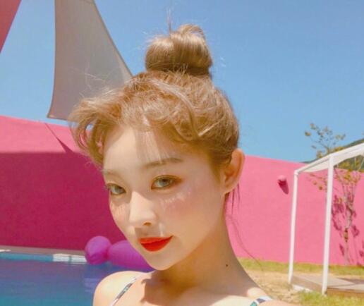 不少妹子喜欢扎丸子头时配一点刘海来修饰额头,这款夏季丸子头就很不,前额刘海进行烫卷,看起来更加时髦洋气一些,而且金发更抢眼。