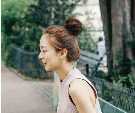 无刘海 高丸子头最显清爽感了,而且丸子头看起来也非常饱满又质感。夏季这样扎发型,保证你清爽度夏。