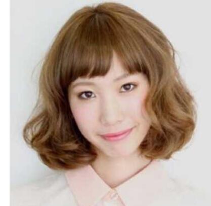 韩式蛋卷头发型是不少女生的心头好,波浪大卷的蓬松发丝包裹着整张脸部,圆脸瞬间变小脸,搭配露出眉毛的刘海,尽显小女生的甜美可爱。