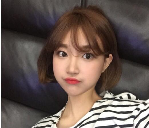 二次元短发,李圣经这一款二次短发也是减龄到不行,整齐修剪过的短刘海修额头又可爱,与长度齐脖的短发搭配更利落呢。