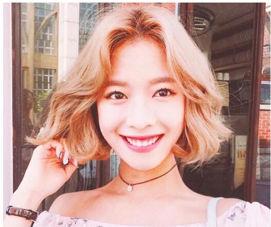 韩国流行的中短发绝对是比较个性的,像这样染一款金灿灿的金色染发,轻轻松松就让造型变得时髦起来,而且发色明亮很养眼。