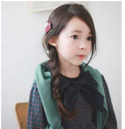 大爱韩式时尚的妈妈们,肯定想要将小女孩打造成韩流小美女,那么在秋季将女儿偏梳长发编织成韩式侧麻花辫吧,辫子上方点缀时尚发饰,搭配韩国流行女童秋季连衣裙,美萌可爱的韩范小萝莉就轻松塑造出来了哟。