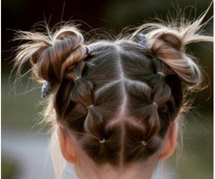 短发的女孩在扎发过程中为了避免发丝的散落竹节造型的扎发是非常漂亮合适的,这款将发丝分成左右均等的两个部分,将发丝从下往上做竹节扎发造型,在发顶位置将发丝盘成两个可爱的小丸子造型。