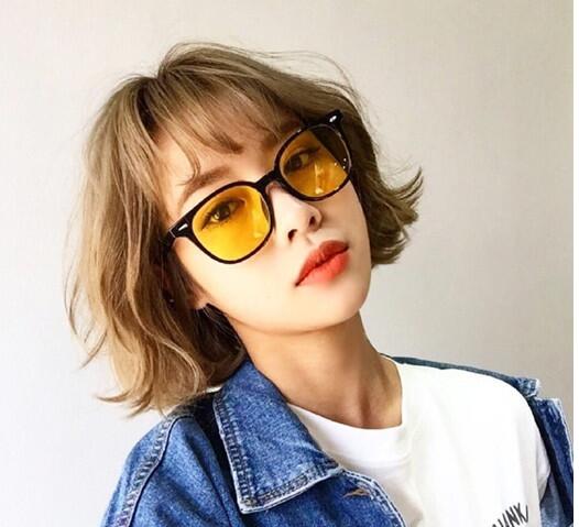韩国流行的中短发绝对是比较个性的,像这样染一款金灿灿的金色染发,轻轻松松就让造型变得时髦起来,而且发色明亮很养眼。
