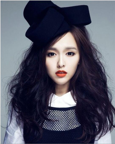 偏分 大波浪卷发:唐嫣这一款偏分大波浪卷发真是妩媚极了,大波浪弧度的卷发让人看起来性感十分,而偏分发更是帮她修饰额头与脸型,加上一抹红唇,更是惊艳。