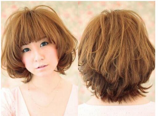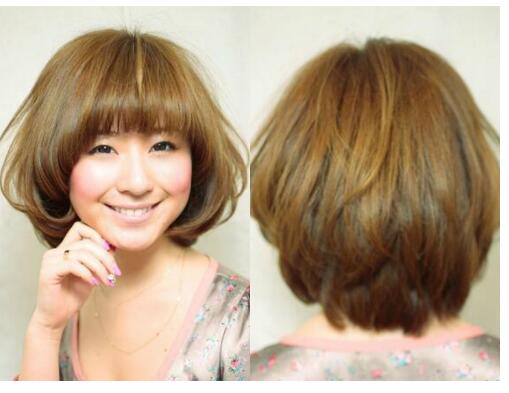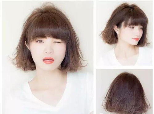 内扣齐刘海遮盖额头适合长脸妹子让脸型变小,发尾烫发然后打乱营造蓬松感,让波波头看起来有时尚气质,让妹子看来清爽柔美,吸睛指数也挺高的。
