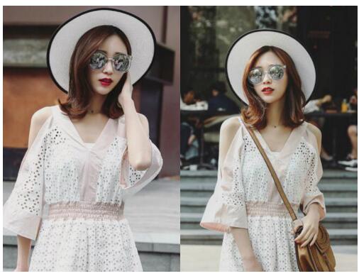 要想利用波波头发型修脸,侧分刘海也是个不错的选择,这款波波头烫发发型利用三七分的长刘海打造出脸部最佳的黄金比例,大饼脸立刻拉长显瘦,及肩的发尾设计出柔美的线条感,在锁骨处划出完美的弧度,再加上大墨镜对脸部的遮挡作用,修颜效果更加好哦。